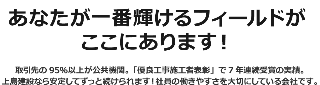 上島建設は京都府南部で50年、公共工事を主軸に様々な工事を手がけ、7年連続「優良施工者表彰」を受賞している「施工品質」にこだわった会社です。