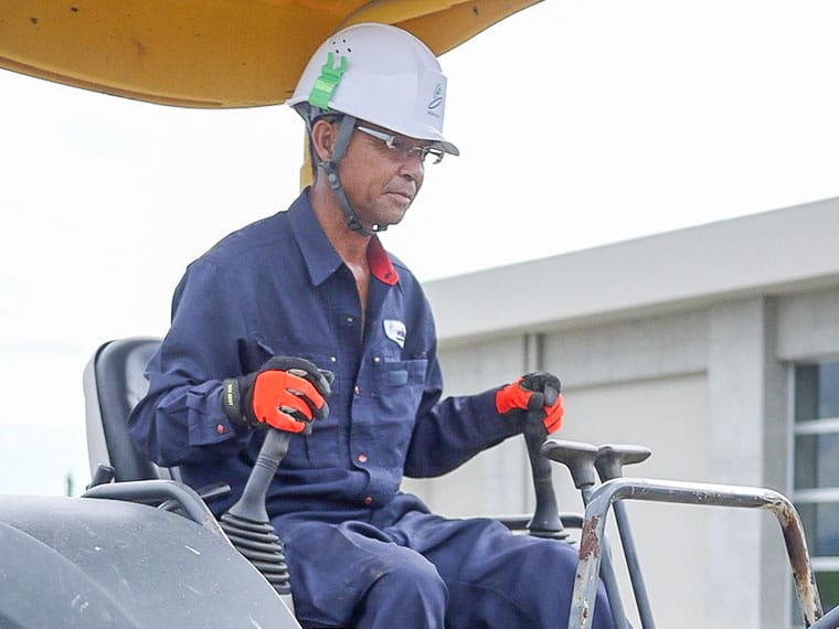 大型重機を使った作業も安全に行われ、本日の現場作業も無事終了。予定した施工を完了できてホッとひと息。「お疲れ様!」職人さん達に挨拶と感謝の言葉をかけます。